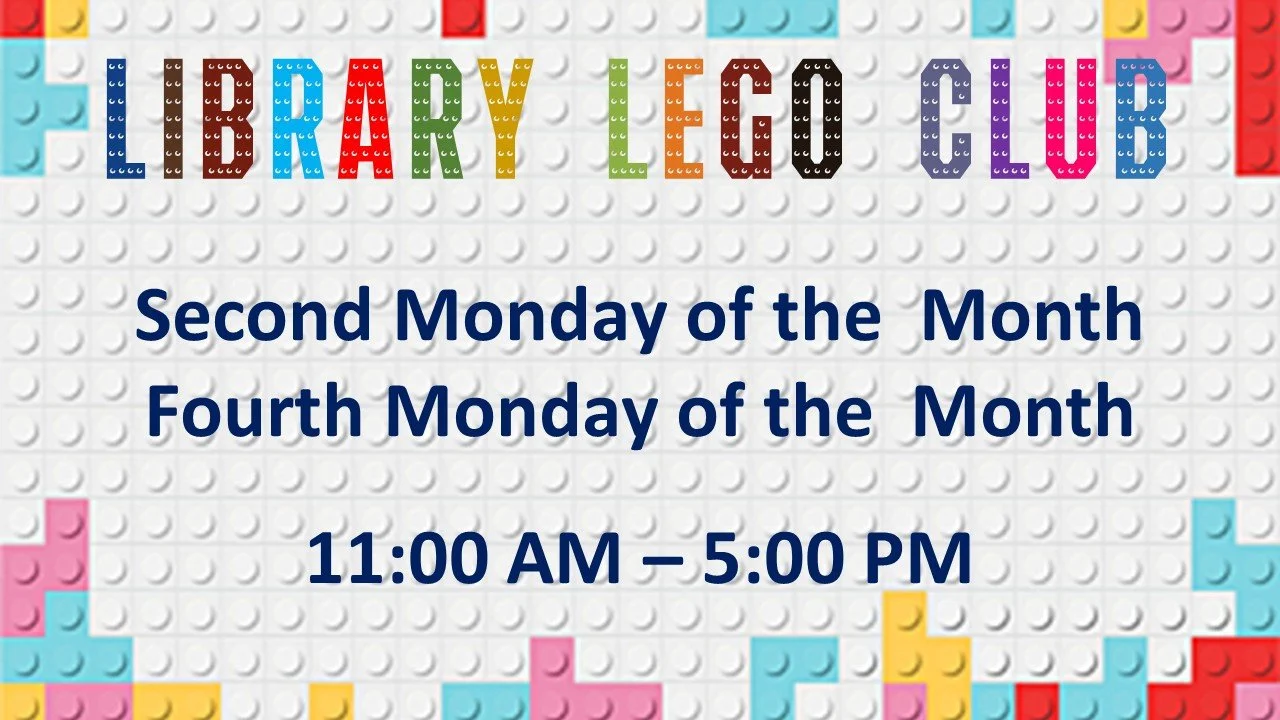 The Lego Club meets on the second and fourth Mondays of each month with a set theme. Children can stop in between 11:00 AM and 5:00 PM and build from prepared boxes of Legos and make something based on the monthly theme.